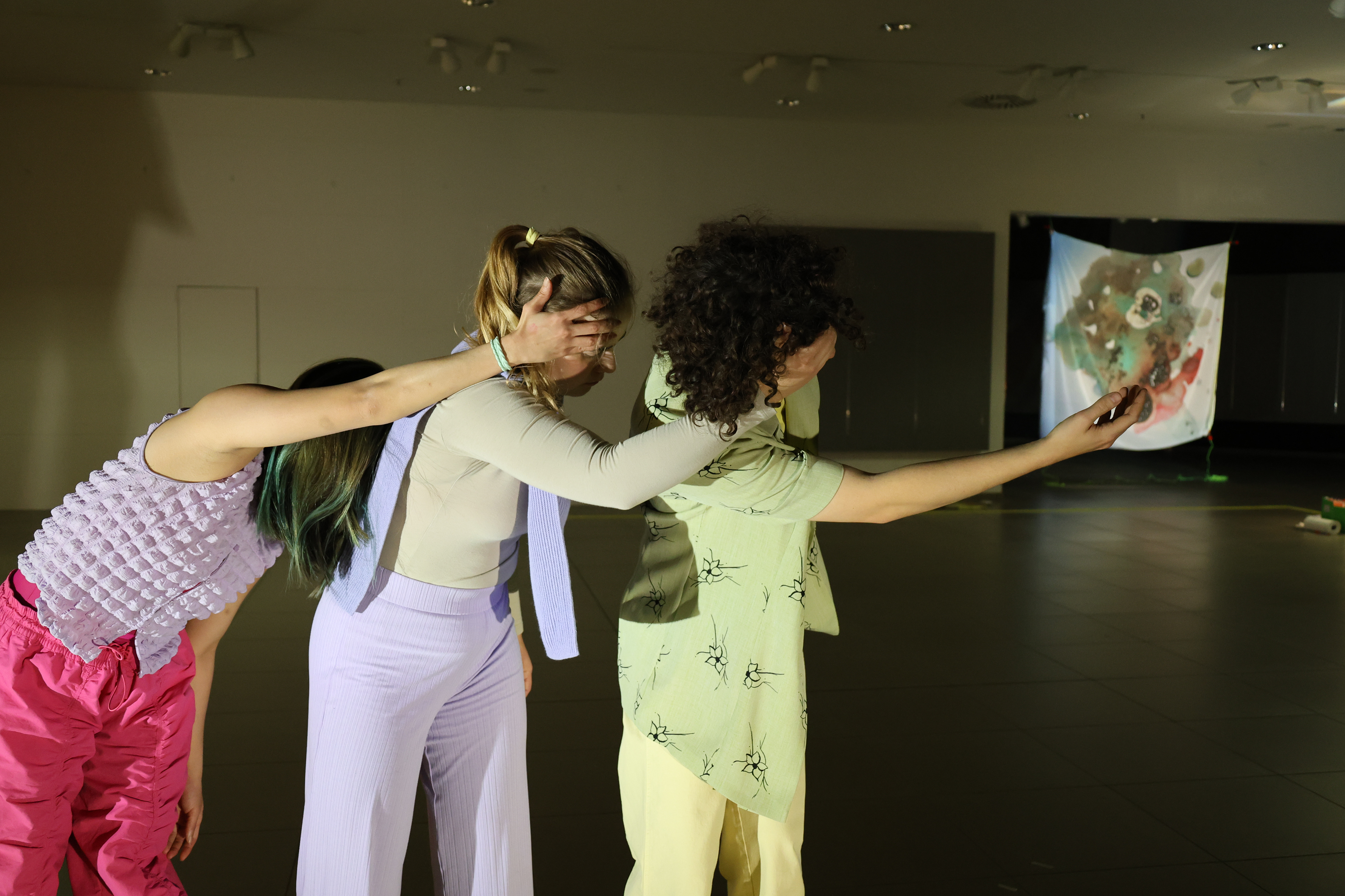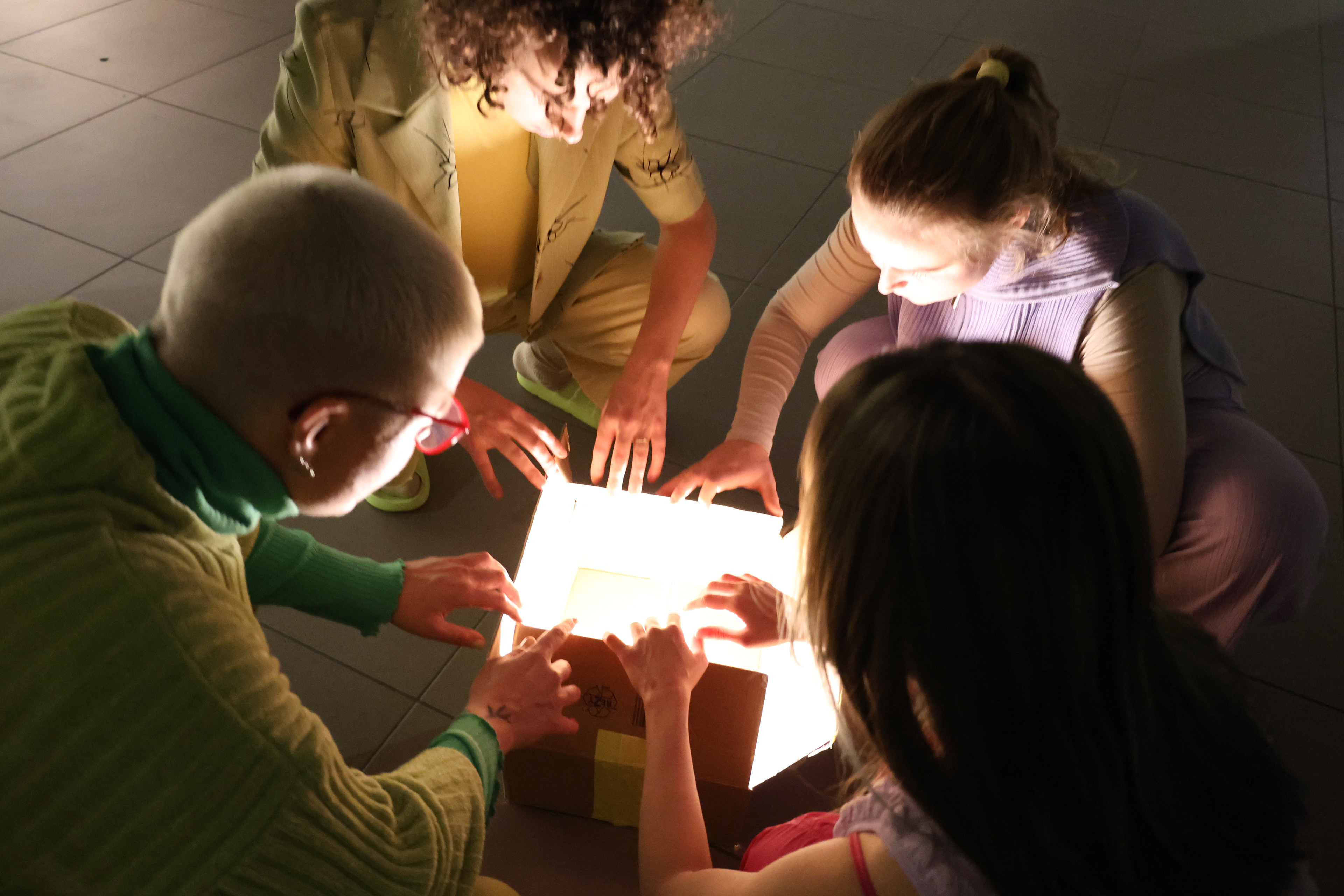 Zwölf Szenen Stille ist eine Theaterperformance zur Kraft der Leerstelle, des Abwesenden und der Stille von und mit SueKi Yee, Christina Sauer, Nicola Reinitzer und Mathis Dieckmann.